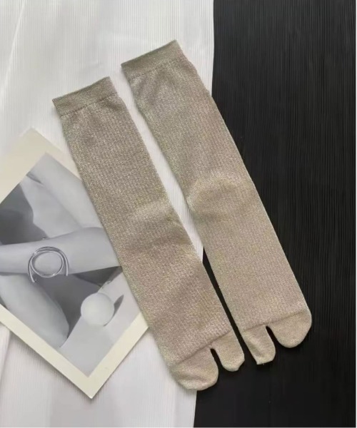 繊細なラメ糸を全体に織り込んだ、上品な足袋タイプのソックス。
