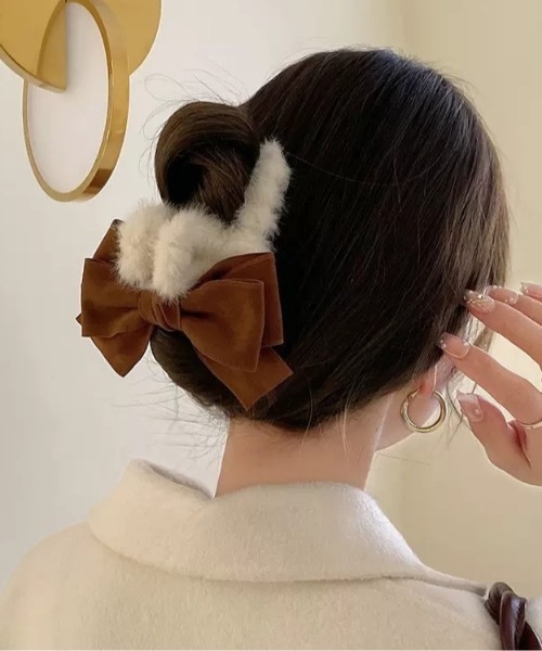 ふわふわのファー×大きめリボンが愛らしい、冬らしさ満点のヘアクリップ。