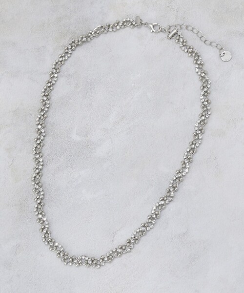 メタル上にビジューやフェイクパールをあしらった華やかなネックレス