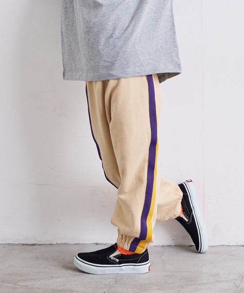 配色が印象的なラインパンツ。