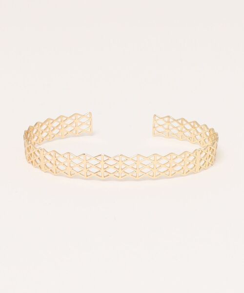 ダイヤモチーフを透かし模様で連ねたメタルバングル。