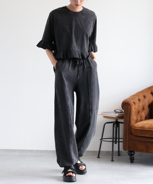 同素材のフリルスウェットTシャツも展開予定です(8月中旬)。セットアップで合わせればスポーティーなラフスタイルに♪