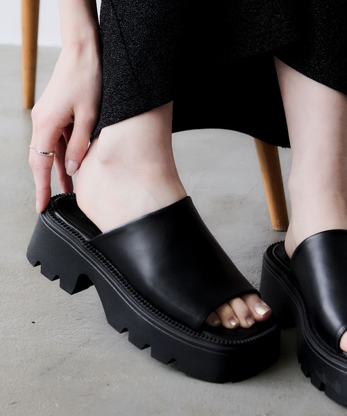 ✔ オープントゥ×スクエアトゥでトレンド感と抜け感を両立