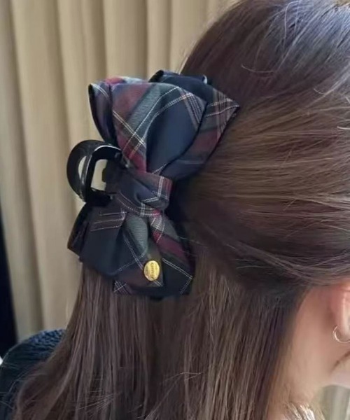 クラシカルチェック リボン バンスクリップ