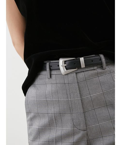 少しボリューム感のあるバックルと、先端のメタルパーツがデザインのアクセントになるベルトです。