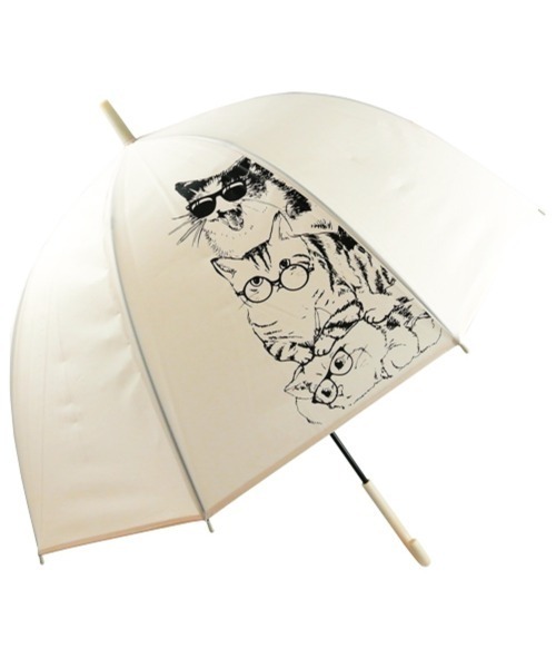 可愛いネコちゃんモチーフ付きなのもポイント◎【傘生地に大きなプリント】・シンプルだけど可愛いネコちゃんのプリントと英字ロゴが心惹かれるデザイン♪ネコちゃん達と一緒に雨の日も楽しくお出かけができるアイテム。