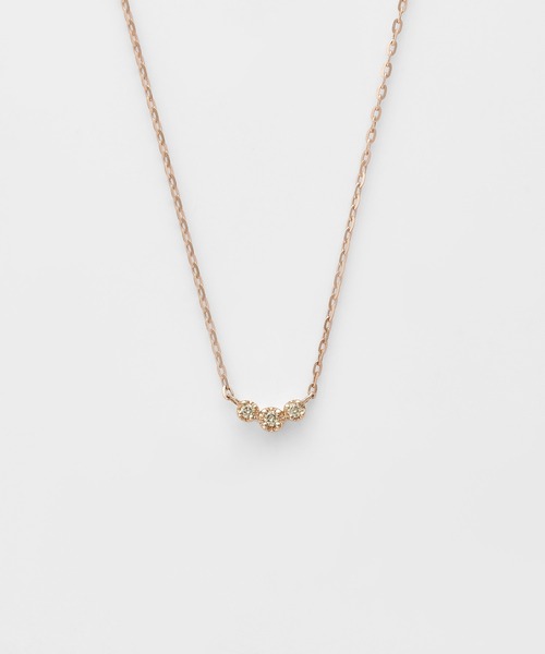 小さなダイヤモンドを3石並べた、K10素材のネックレス。