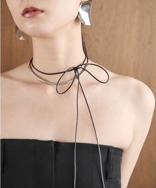 リボン結びや二重に巻いたりとメニーウェイな使い方が楽しめるロングチョーカー。