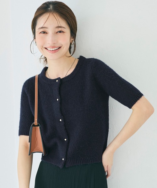上品なゴールドボタンが目を惹く、半袖ニットカーディガン