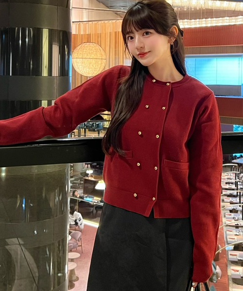 ・上品に煌めくダブルボタンが印象的なニットカーディガン