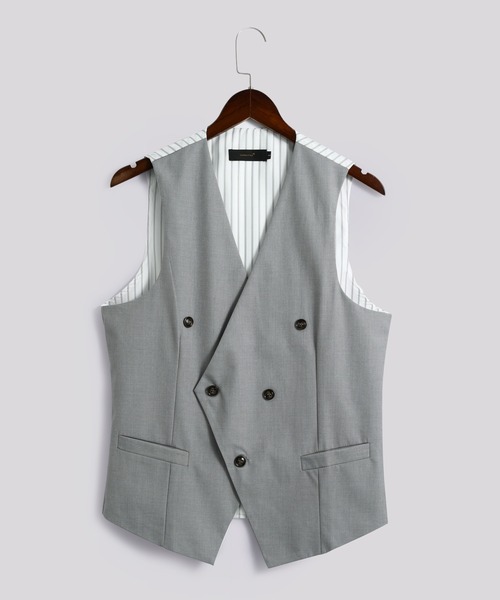 季節もシーンも選ばないフレックスなオッドベスト。このダブルブレスト5ボタンのメンズベストは、シンプルながら洗練された無地デザインで、ビジネスからカジュアルまで幅広く活躍します。