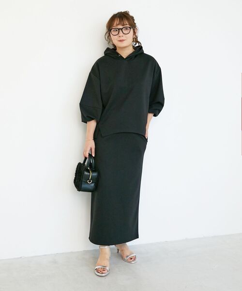 パーカーはバックスタイルはふんわりとコクーンシルエットで気になる背中からお尻周りをカバーアップ!