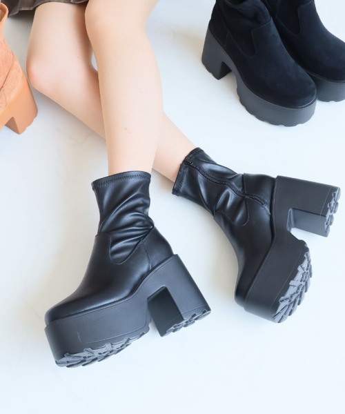 ZOZOTOWN+オフィシャルサイト限定商品圧倒的な存在感を放つ11cmチャンキーヒールと、脚にフィットする美シルエットで足元も盛れるストレッチブーツ!