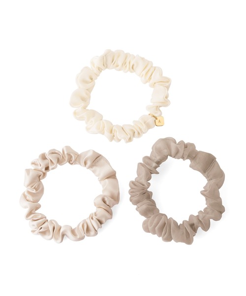 異なる生地とカラーの組み合わせが、うしろ姿を華やかに仕上げるシュシュ。