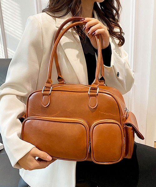 しっとりとした肌触りのPUレザーに、様々なサイズのポケットをあしらった大人かわいいトレンドルック♪