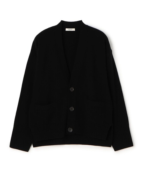 カーディガンはドロップショルダーにややゆとりのあるボリュームシルエットでリラックス感のある一枚。