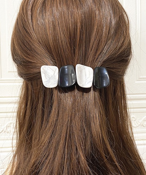 大理石のようなカラーリングがリッチな雰囲気を与えるバレッタ。
