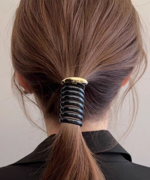 束ねた髪をフックに挟み、コイルをくるくるっと髪に巻きつけるだけで、簡単におしゃれ見えするヘアアクセサリー2点セット。