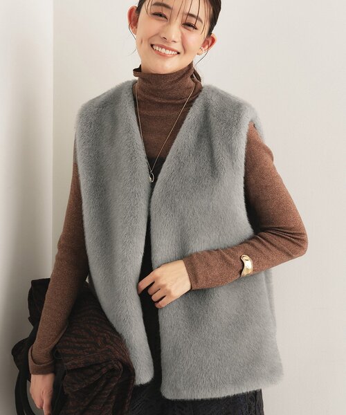 トレンドのミンク調の滑らかなタッチのファーが秋らしさをぐっと引き立てるシンプルなジレです。