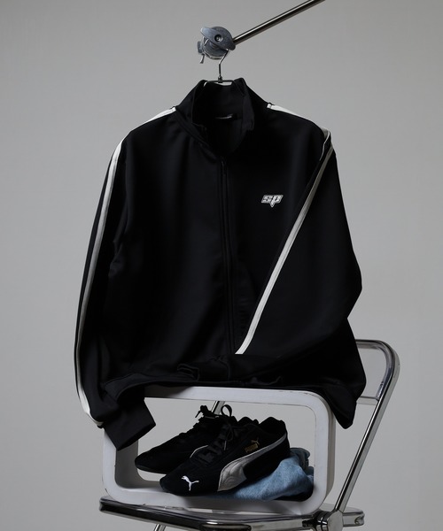 メンズ/ユニセックス/ジャージ/トラックジャケット/ストリートファッション/アウトドア/秋服/秋アウター/刺繍入り/ライン刺繍/軽量ジャケット/カジュアルウェア/スポーツウェア/ゆるシルエット/レイヤード/ストレッチ素材/ユニセックスアウター/スポーティー/トレンドジャケット/秋コーディネート