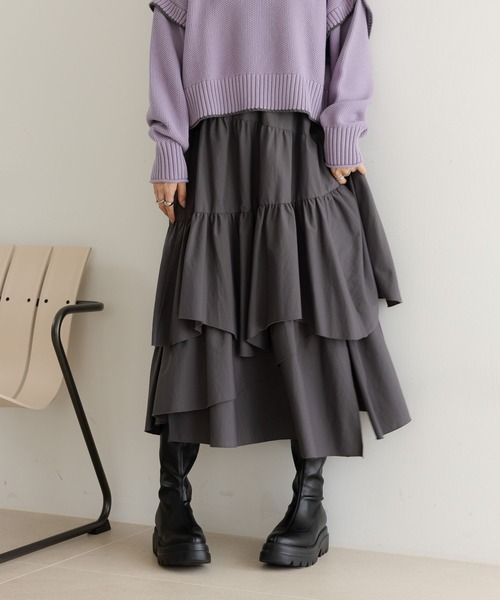 今年らしいイレヘムのボリュームスカート。ランダムな裾が動きのあるシルエットを作り出し、軽やかな印象を与えます。