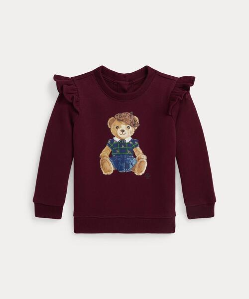 ピーチスキン加工のコットン混紡フリースで仕立て、その後ウォッシュ加工を施すことで着心地の良さをさらにアップしたスウェットシャツ。フリルトリムと、シグネチャーのPoloアイテムを身にまとった人気のマスコットのプリントがとびきりキュートなアイテム。