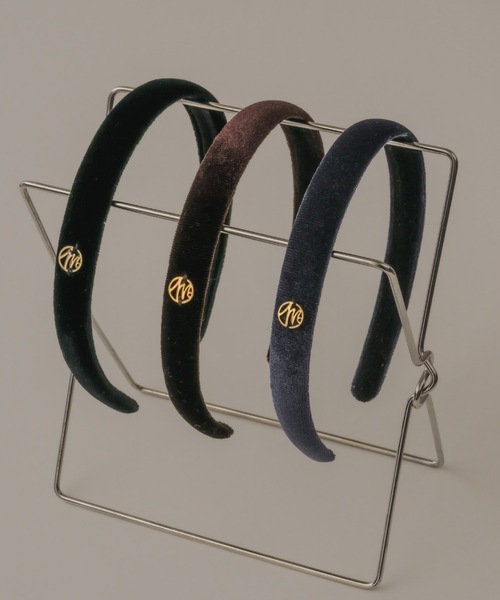 ベロア調カチューシャにゴールドのロゴ付きで、