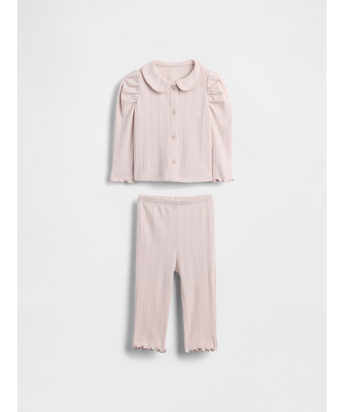 伸縮性のある優しく心地良い肌触りのコットン混リブニットコーデセット