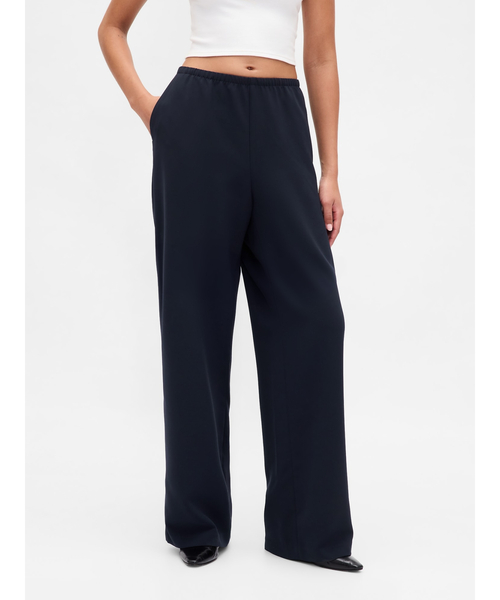 伸縮性のある優しく心地良い肌触りのツイル生地で作られたイージーウエストワイドパンツ