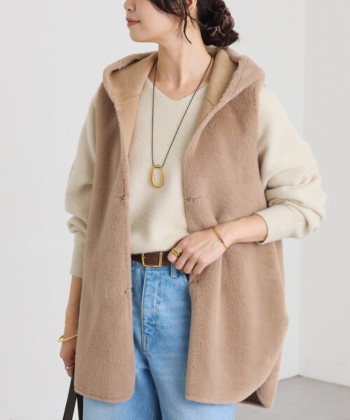 存在感のあるフードとファーがポイントのリバーシブルジレ●デザイン