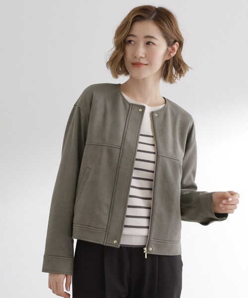 ジャケットライクに着られるノーカラーデザインのジップブルゾンです。