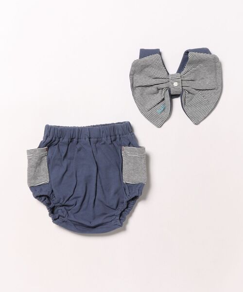 スタイとブルマのセット。スタイをリボンに見せるとかわいらしい雰囲気を楽しめます。また、スタイを広げた時は、おしゃぶりを通すことも可能です。ギフトにもおすすめ!