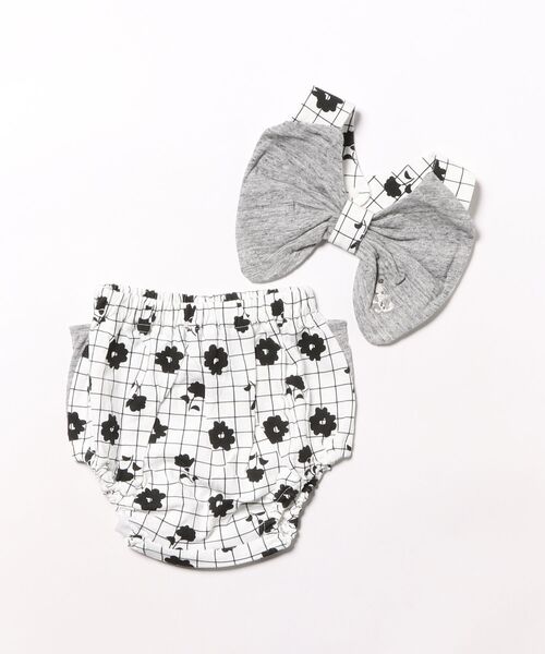 スタイとブルマのセット。スタイをリボンに見せるとかわいらしい雰囲気を楽しめます。また、スタイを広げた時は、おしゃぶりを通すことも可能です。ギフトにもおすすめ!