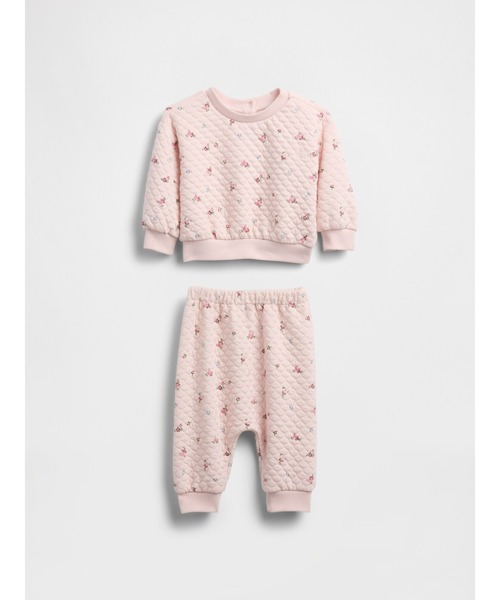 キルト加工された柔らかく伸縮性のあるジャージー生地2枚を重ねて作られたジャカードスウェットシャツとプルオンパンツ