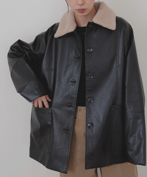 上質なフェイクレザー×ボア襟で大人カジュアルを格上げするオーバーサイズジャケット。