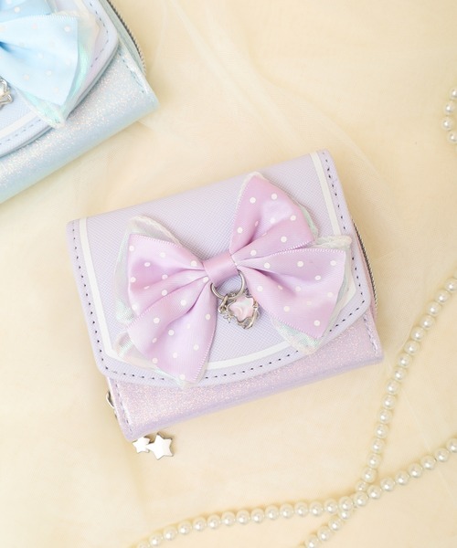 キーワード:財布 キッズ 子供 女の子 ドット リボン 三つ折り ガーリー フェミニン プチプラ プレゼント ギフト 夏 子どもの日 秋 新生活 定番