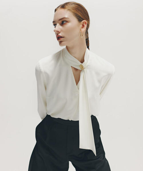 1枚でも様になり、ジャケットインにも合わせやすい女性らしい着こなしが叶う美ブラウス。通勤シーンにも取り入れやすいエレガントな仕上がりです。