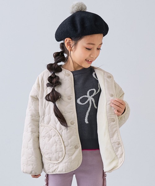 キルトがハート型になっているさりげなくかわいい1枚。秋冬のコーデに女の子らしさをプラスしてくれるアイテムです。