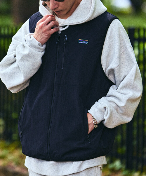 身幅にゆとりがあるので、ビッグシルエットのパーカーや厚手のサーマルの上から羽織ることも可能。