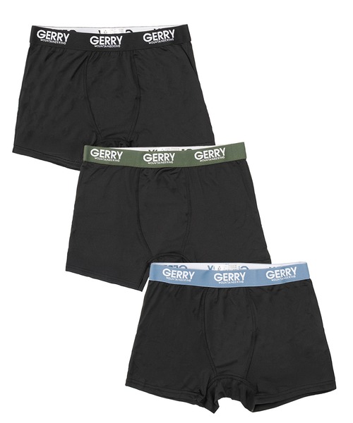 スタイリッシュなウエストロゴゴムが目を引くGERRYの3枚セットボクサーパンツ。シンプルでありながらも、配色ロゴでさりげないアクセントを加え、インナーとしてだけでなく見せパン的な要素も◎。