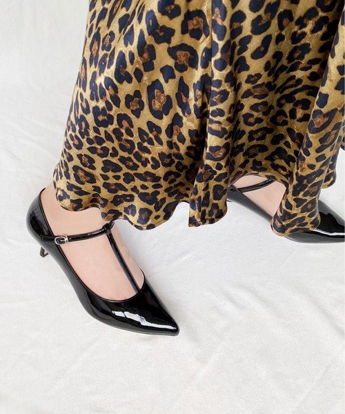 デイリーに使いやすい5cmヒールのTストラップパンプス。低めヒールながらポインテッドトゥが足元をシャープで綺麗に見せてくれる、優秀な1足です。