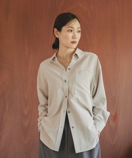 シャツとして一枚で着る際は、少し襟を抜くとこなれた印象に仕上がります。