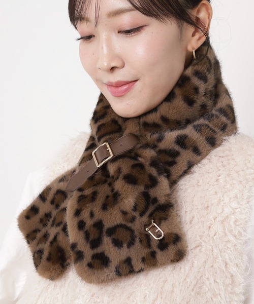 【ベルトがアクセントのフルラのフェイクファーのマフラー】