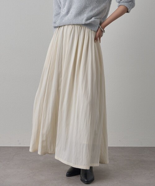 ふんわりと広がるシルエットが美しいロングスカート■デザイン歩くたびに優雅に揺れるシルエットは、女性らしさを引き立てます。