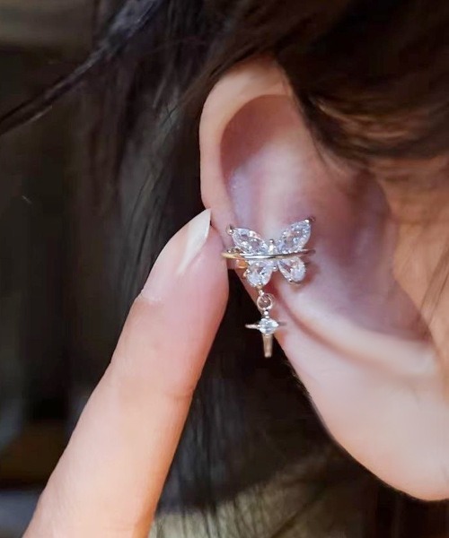 バタフライモチーフのキュートなシングルイヤーカフ。