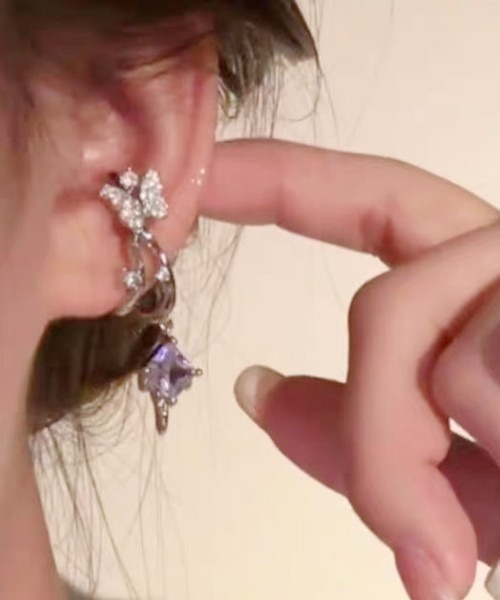 商品名:【MASHIRO】バタフライドロップパープルスターダストシングルイヤーカフ(MA/EK412)
