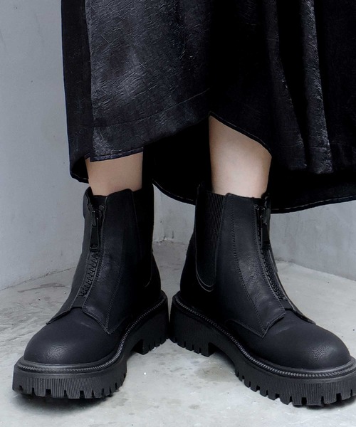ブーツ 履きやすい サイドゴア ソックスブーツ 厚底
