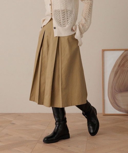 腰回りはすっきりさせてミドルヒップからタックを施して裾にかけて広がるシルエットに仕上げました。