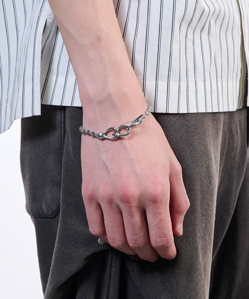 シンプルな中に構築的なシルエットを残し、ミニマムながらも主張のあるブレスレットです。