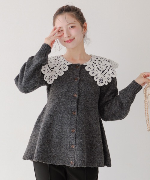 クラシカルな雰囲気漂う大きめのバテンレース襟と